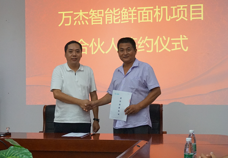 2017年8月4日,萬杰智能總部又迎來山東省兩位合作伙伴,山東省泰安市華任經(jīng)貿(mào)有限公司劉總、山東省曲阜市鑫海商貿(mào)有限公司楊總分別與萬杰智能簽署了《智能鮮面機合伙人合作協(xié)議》。 此次,泰安、曲阜兩市的加入,標志著萬杰智能鮮面機項目山東市場正式開啟。至此,萬杰智能鮮面機全國招商突飛猛進,赤峰、新鄉(xiāng)、鄭州兩個區(qū)域、鶴壁、寧波、義烏、溫州、洛陽、大慶、許昌禹州市、泰安、曲阜相繼加入,全國招商工作屢獲佳績。 萬杰智能董事長王曉杰與山東省泰安市華任經(jīng)貿(mào)有限公司劉總 萬杰智能董事長王曉杰與山東省曲阜市鑫海商貿(mào)有限公司楊總 山東省是我國面食大省,尤以打鹵面最為著名和正宗,現(xiàn)制鮮面條的出現(xiàn),將會為當?shù)匕傩彰媸成畹?/font>“安全、健康、營養(yǎng)”創(chuàng)造了更多可能。 得益于主食安全和模式創(chuàng)新,萬杰智能聚集了全國各地的事業(yè)合作伙伴,各個城市的合伙人與萬杰智能共同扛起“主食安全”的大旗?梢哉f,獲得收益,充其量只是門生意,而造福百姓,然后讓所有參與者共同受益,這才可稱得上是一份事業(yè)。萬杰智能鮮面機項目的合伙人正是這樣一支隊伍,做主食安全,為一方百姓,這份既有擔當,又前景可觀的事業(yè),誠邀全國地區(qū)意向合作伙伴。 萬杰智能主食機械——為億萬家庭主食安全服務!