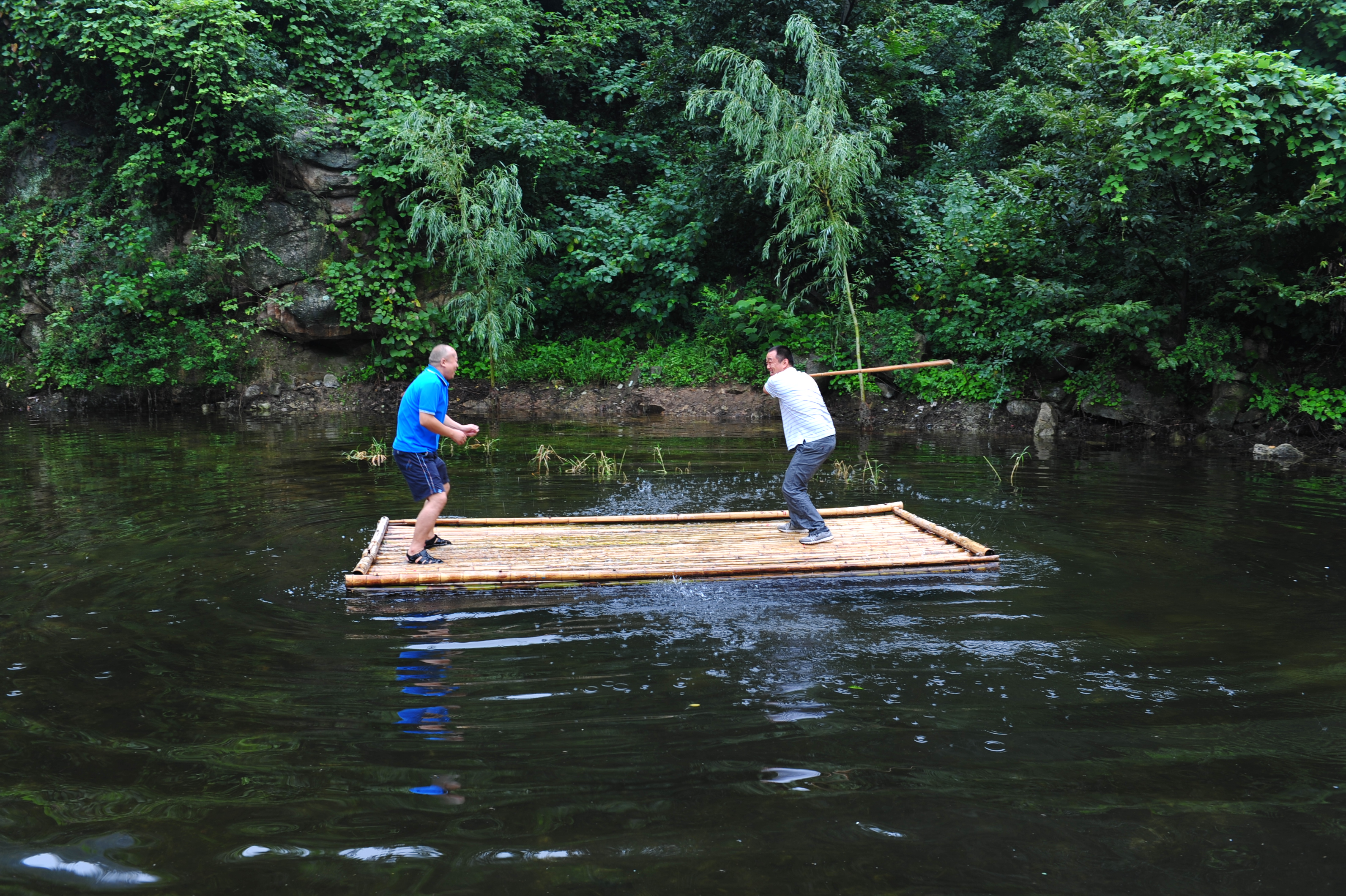 25日下午,導游帶領我們到達南召猿人山大峽谷漂流。猿人大峽谷漂流區域全長12公里,漂流河道周邊自然風景優美,同學們深入景區腹地,把“打水戰”作為傳遞感情的工具,船與船之間你追我趕,互相潑水打鬧,嬉戲玩樂,感受人與自然天人合一的意境,徹底拋棄世俗的一切煩惱,盡情揮灑著充盈在心中的快樂。